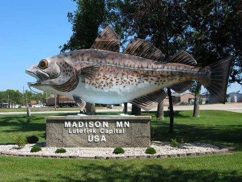 REDEEMING QUALITIES: Madison is the Lutefisk Capitol of the World. Now, one could dispute that this is a redeeming quality, but for an upsetting number of Scandinavians, food is not to be savored but to be overcome. Lutefisk is their Everest. It's whitefish or cod cured in lye, the same thing you use to unclog your drains. So, to answer your question, yes, it's marinated in poison. The resulting product is a gelatinous lump that tastes worse than it sounds. Best enjoyed while staring into the middle distance and holding distant violence in your heart.